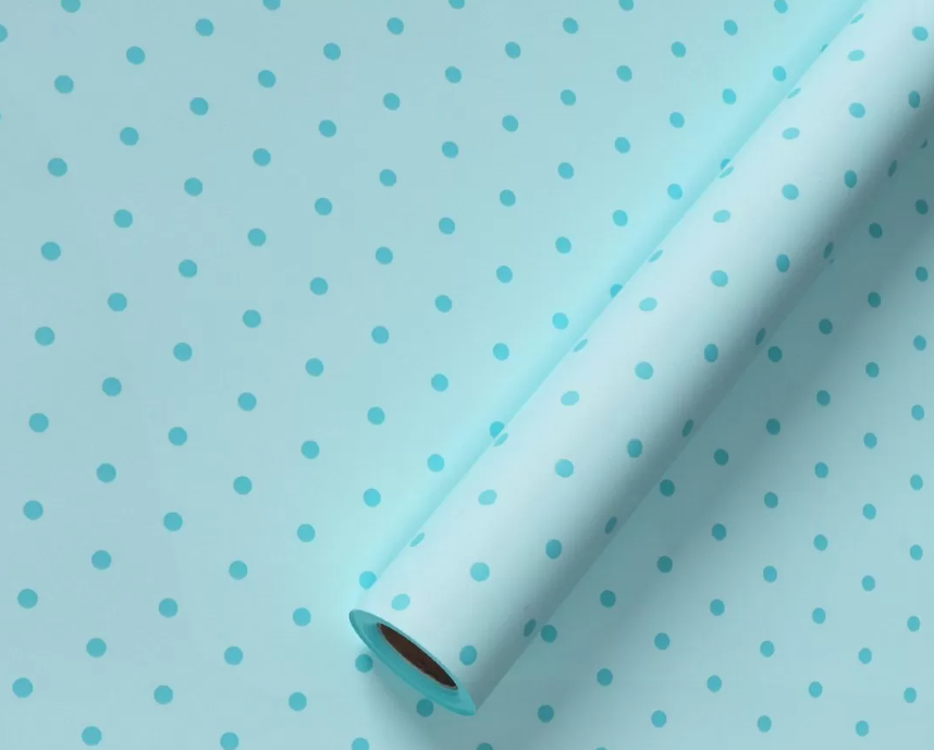 Упак. материал флористическая пленка “Цветные горошины”, 65 мкр, 58 см х 10 м, пастельно-голубой