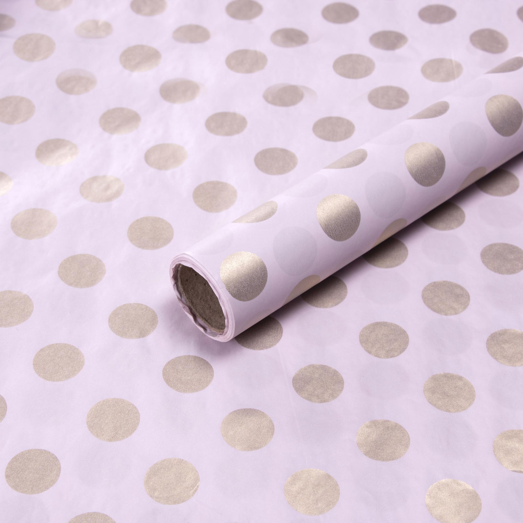 Количество товара Упак. материал "Тишью в горошек", 58см*10м., светло-розовый/золото