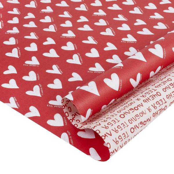 / Упаковочная бумага 80гр (0,7*1 м) Влюбленные сердца, Красный, 2 ст, 10 шт.