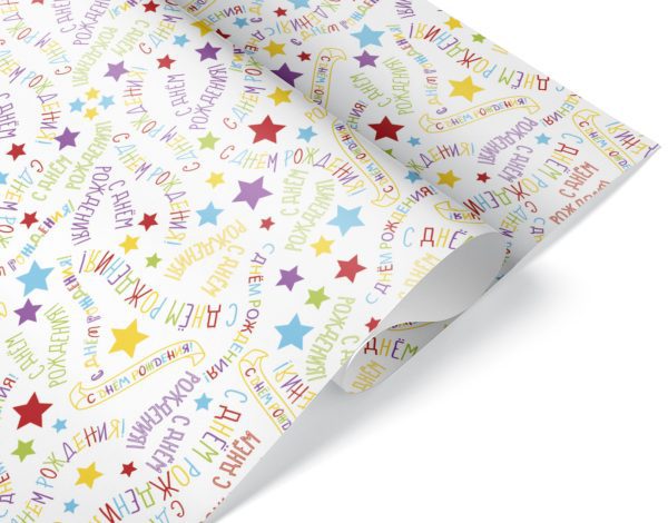 Упаковочная бумага 80гр (0,7*1 м) С Днем Рождения (леттеринг), 10 шт.