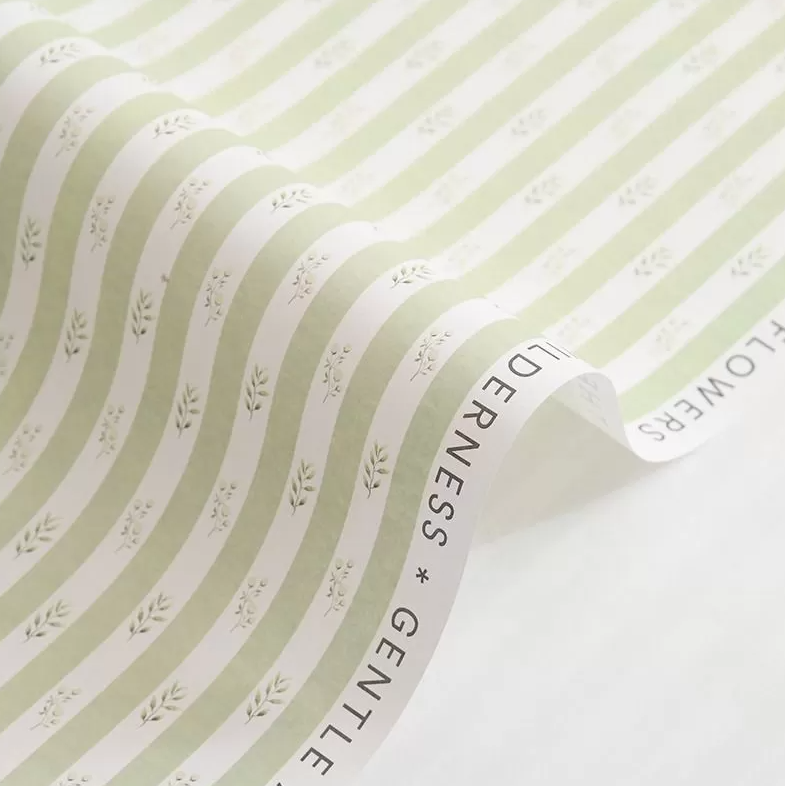 / Упаковочная бумага “Принт цветочные полосы”, 53 см*53 см., 10 лист/упак., лаймовый