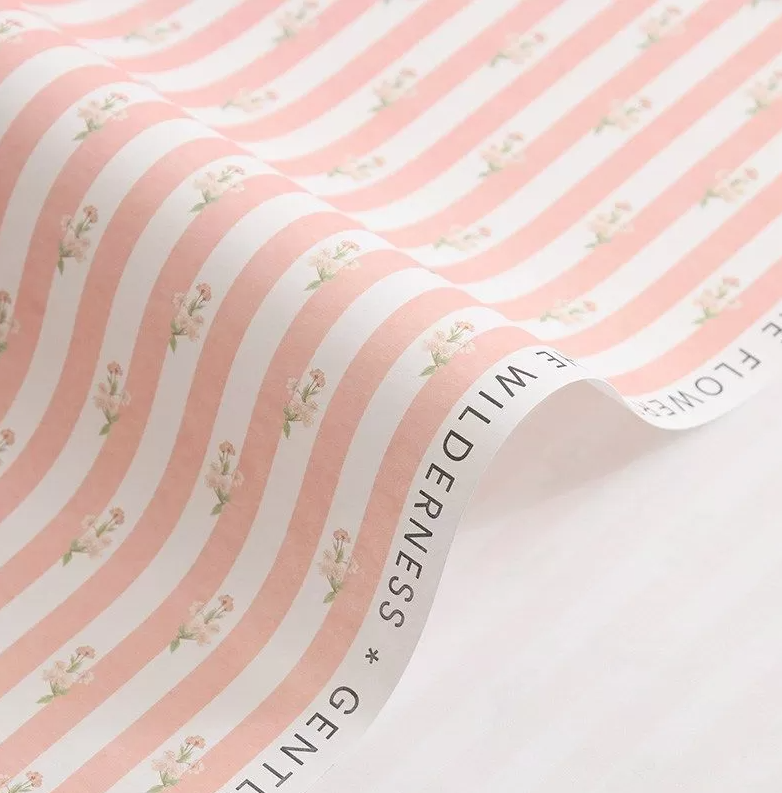 / Упаковочная бумага “Принт цветочные полосы”, 53 см*53 см., 10 лист/упак., персиковый