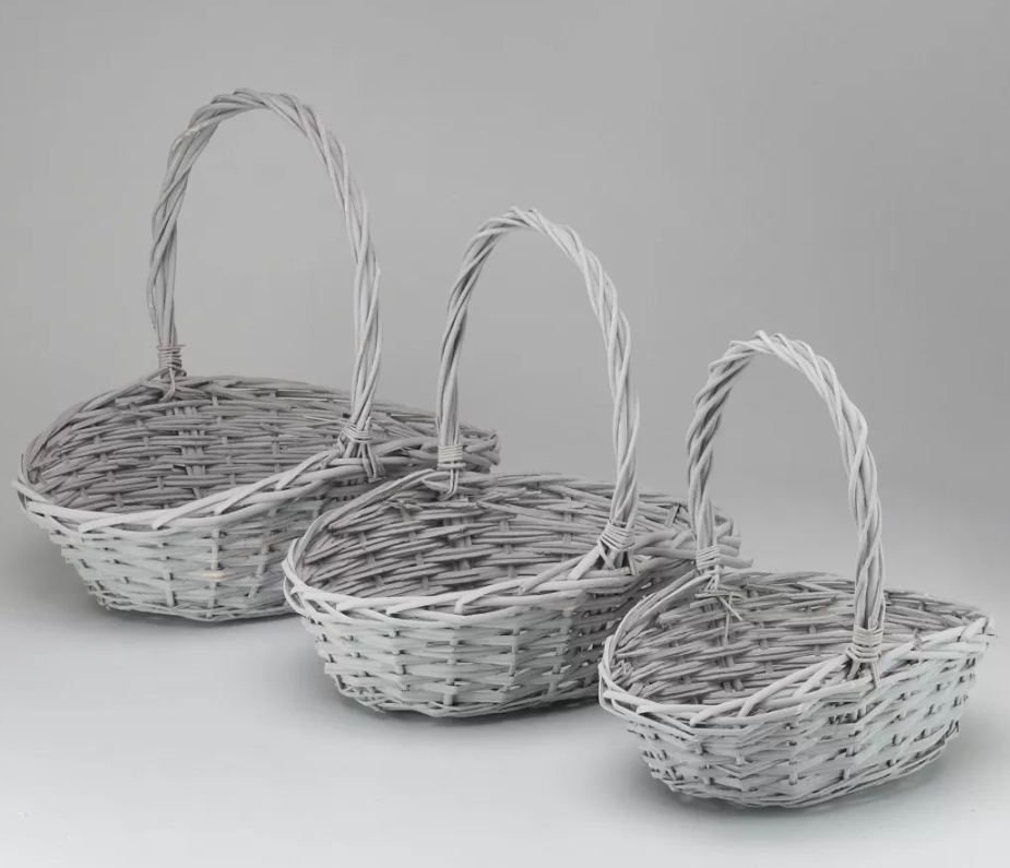Н-р корзин плетеных (ива): L:43*34*(20*12)/41, M:35*28*(17*11)/36, S:30*23*(16*9)/31 см. 3 шт. серый