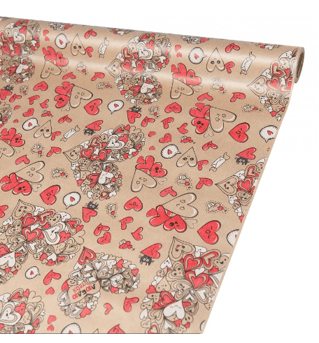 Бумага белая крафт 50г/м2, 70см x 10м Классика Love, розовый
