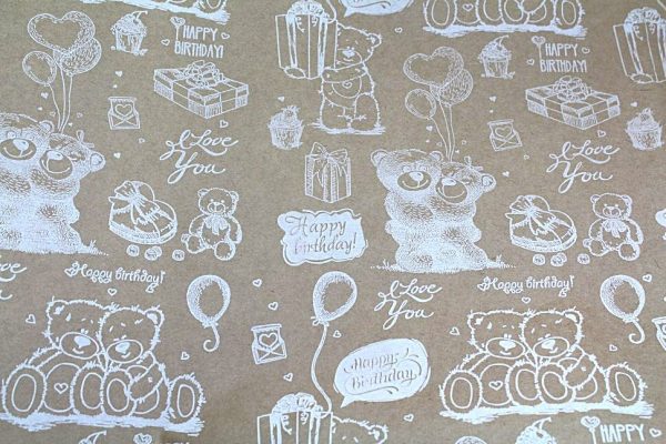 Крафт бумага “Мишки” белый цв. на коричневом фоне 70 см* 8,5 ярд ± 5%