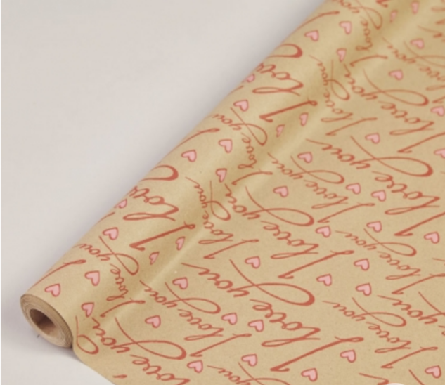 Бумага белая крафт 50г/м2, 70см x 10м Классика Love, красный