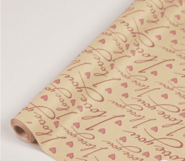 Бумага белая крафт 50г/м2, 70см x 10м Классика Love, розовый
