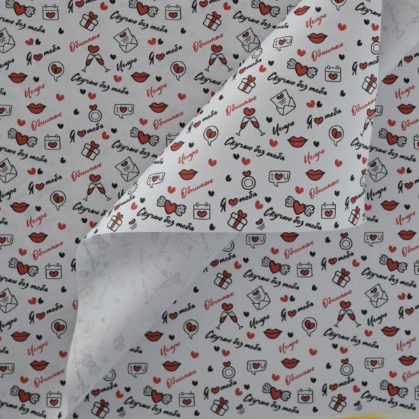 / Крафт бумага “Я люблю тебя” черный/красный цв. на белом фоне 680мм/60гр/10м± 5%