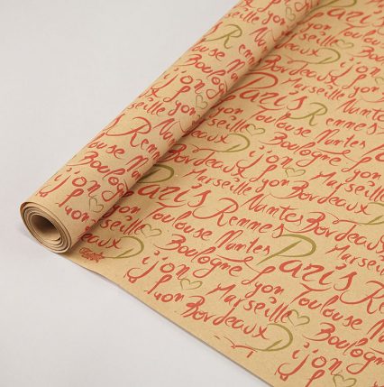 Крафт бумага “Бордо”, 70см*10ярд, бурый/красный-фисташка