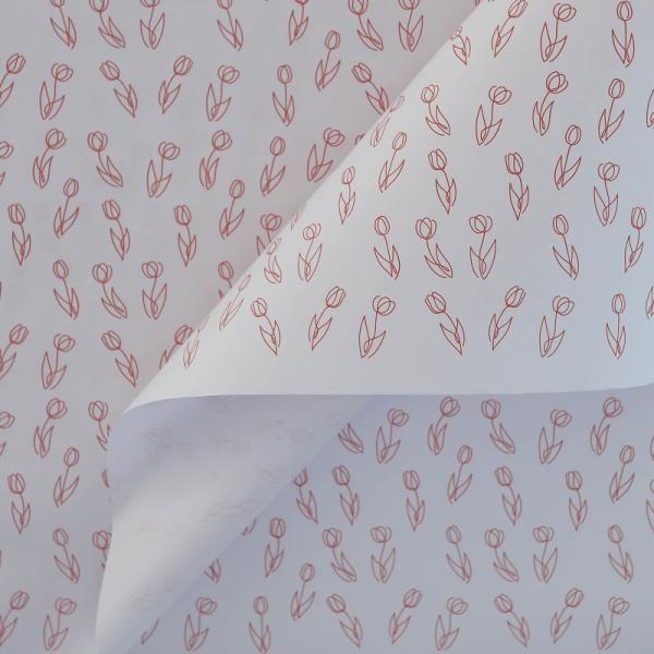 Количество товара Крафт бумага "Тюльпаны" красный цв. на белом фоне 720мм/60гр/10м± 5%
