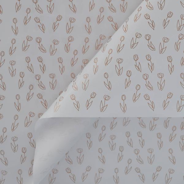 / Крафт бумага “Тюльпаны” золотой цв. на белом мелованном фоне 720мм/60гр/10м± 5%