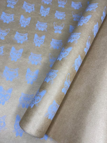 / Крафт бурый “Коты”, 0,7*10м, сиреневый