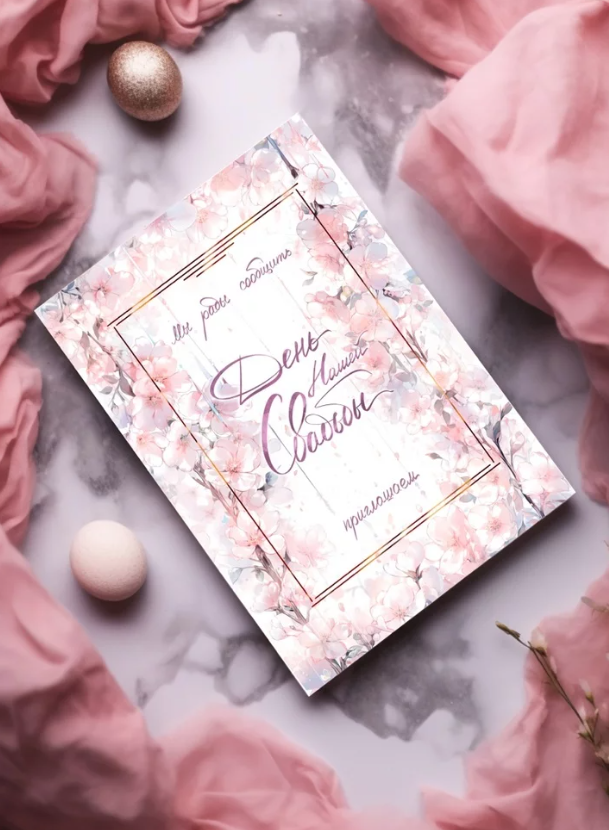 / Пригласительные “День нашей свадьбы (розовые цветы)” PR41 20шт