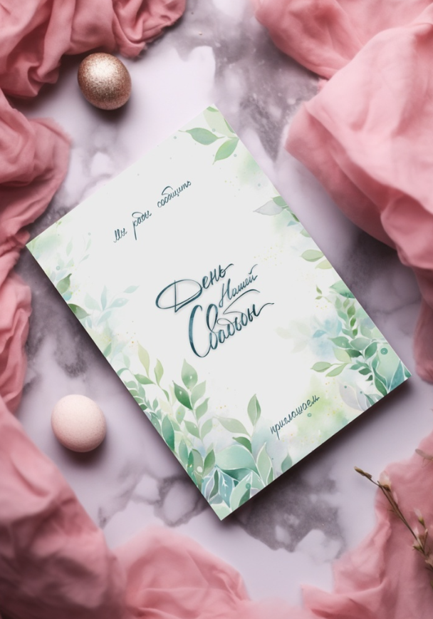 / Пригласительные “День нашей свадьбы (зеленые листья)” PR33 20шт
