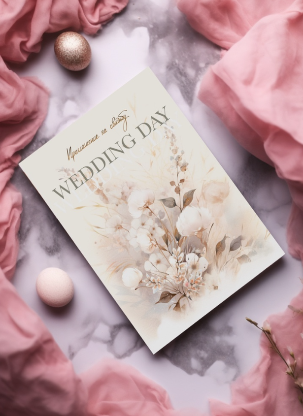 / Пригласительные “WEDDING DAY (букет со льном)” PR34 20шт