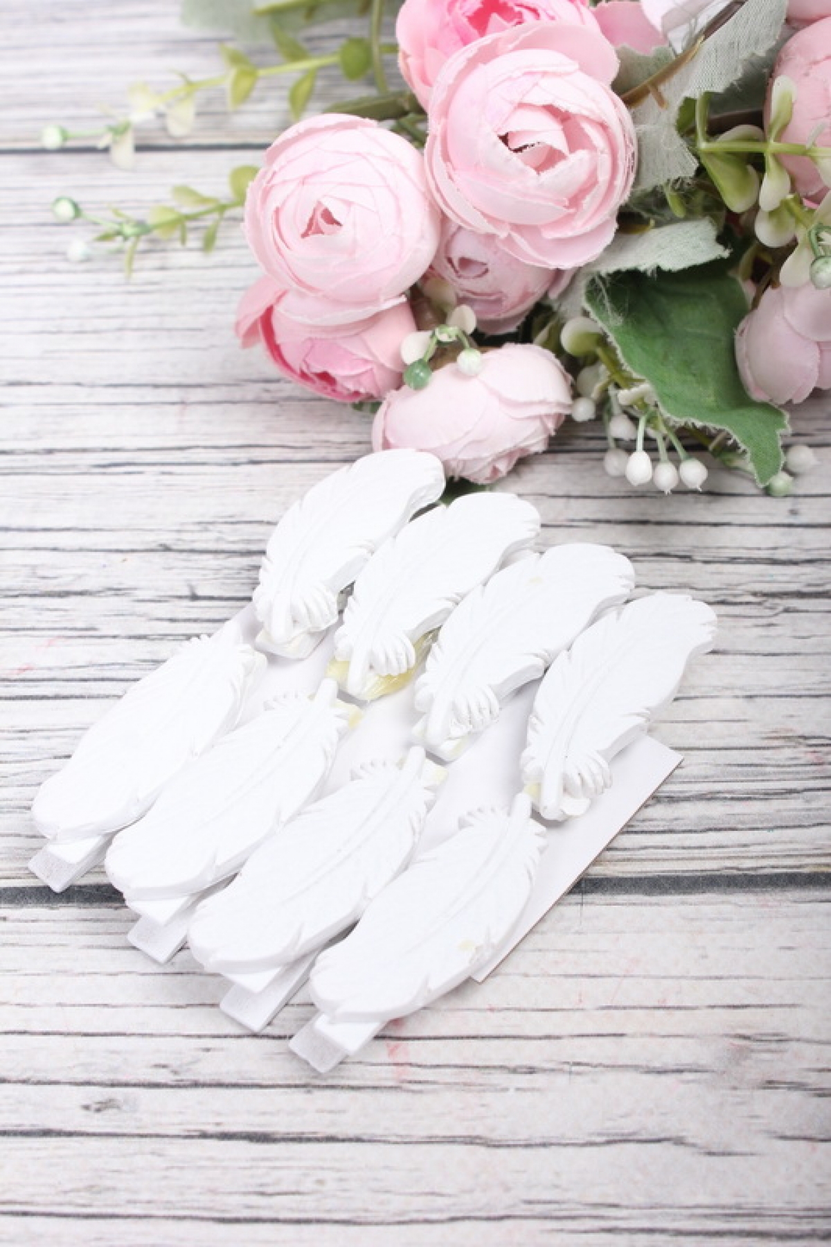 Количество товара Прищепка с листиками 4,5 см белые по 8 шт CAR16