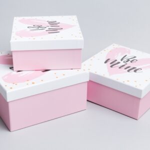 Коробка квадрат набор из 3шт 21x21x11см W71301-14AB сердце розовое