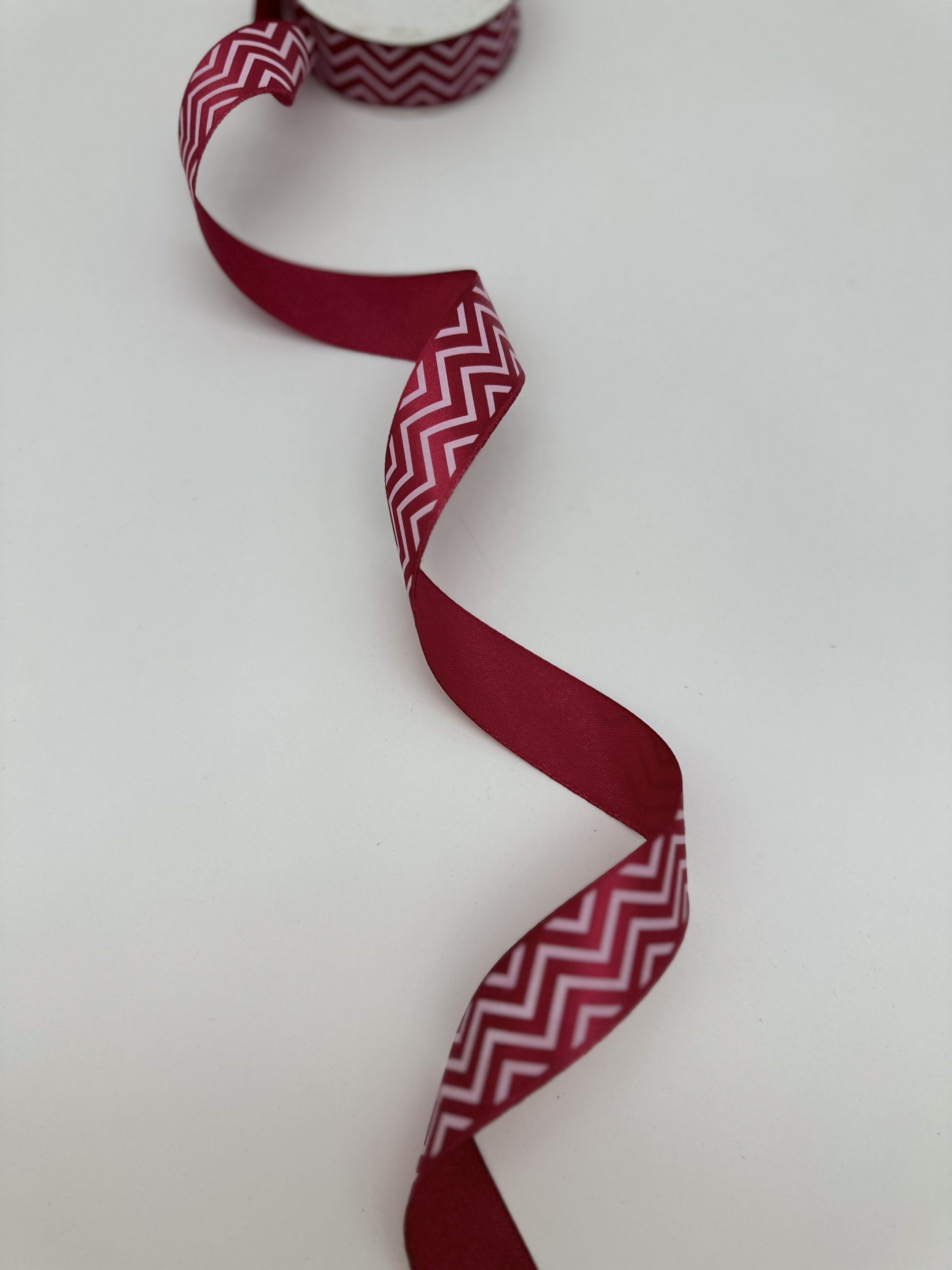 / SALE Лента атласная с рисунком “Зиг-Заг” 2,5см*25ярд, винный