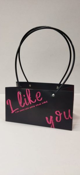 SALE Сумка с пластиковыми ручками “I Like you” 12x12x23cm, 1ШТ., цв. черный