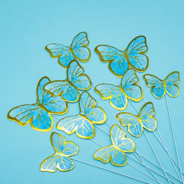 Вставка-топпер Бабочка фольга, 18см, голубая (10шт./уп.)
