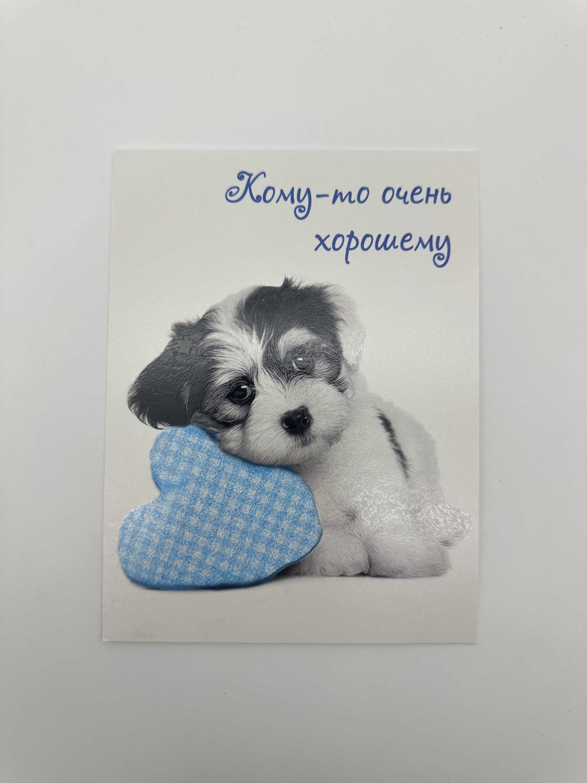 / Открытка 16,5*12,5см, 5шт/уп., “Кому-то очень хорошему” Щенок с сердцем.