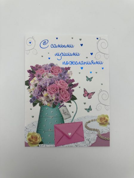 / Открытка 16,5*12,5см, 5шт/уп., “С самыми лучшими пожеланиями” Цветы.