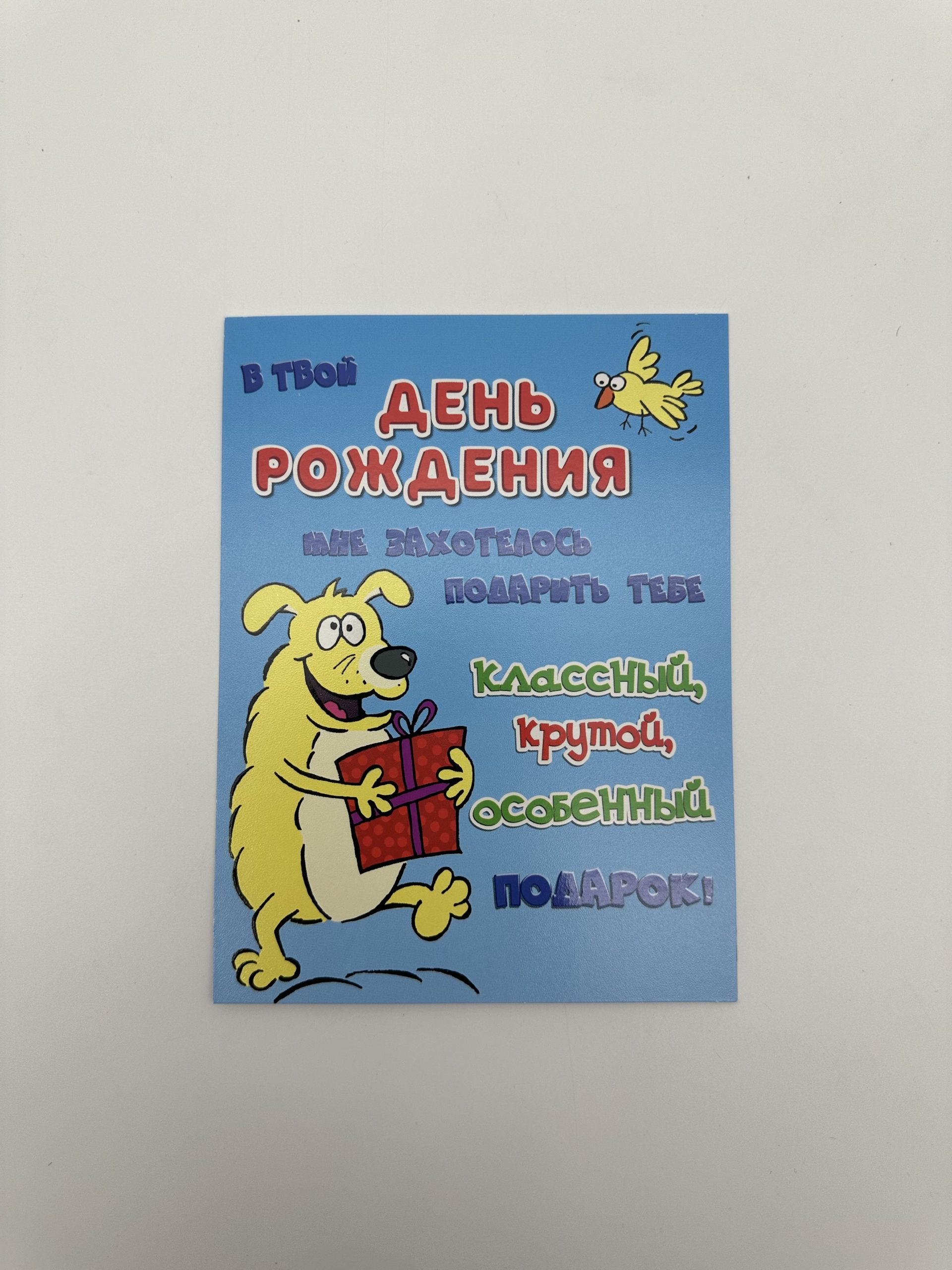/ Открытка 16,5*12,5см, 5шт/уп., “В твой день рождения” Собака с подарком.