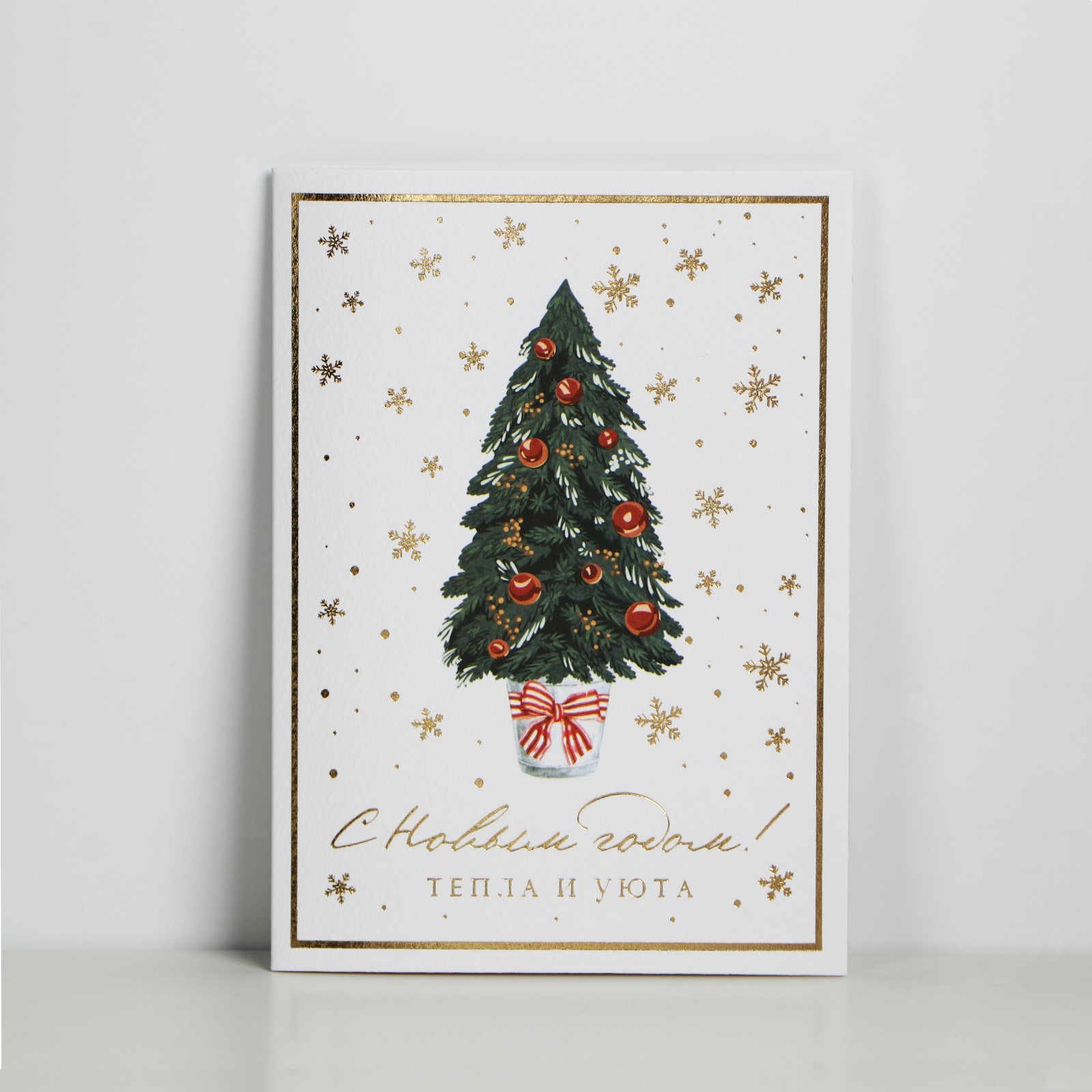 / Открытка с новым годом на акварельном картоне «Тепла и уюта», тиснение, 11.8 х 16.4 см, Новый год