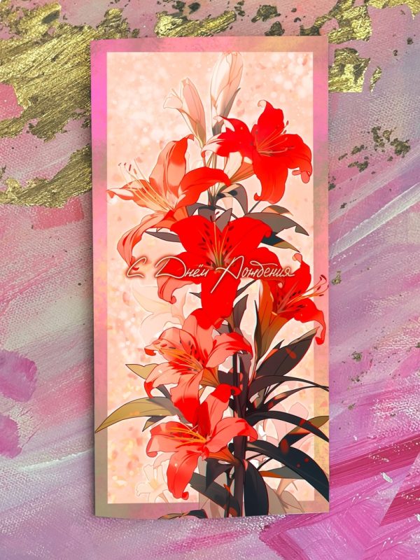 / Открытка Евро “С Днем Рождения! (красные лилии)” E48