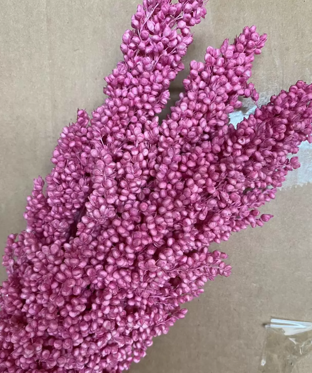 Сухоцвет “Сорго”, длина 70-80 см. 130-180 гр/упак. насыщ.розовый