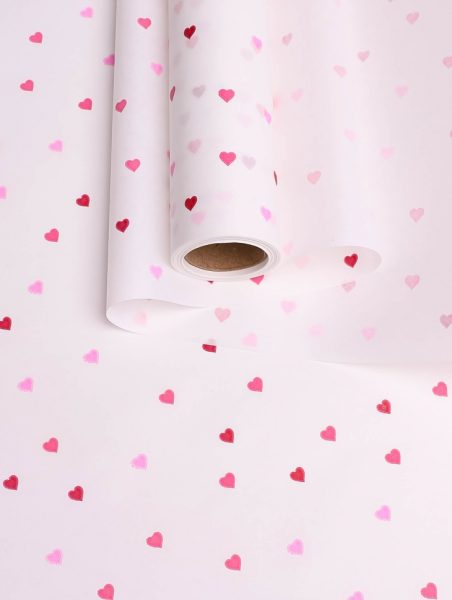Бумага белая крафт 50г/м2, 70см x 10м Сердечки конфетти, нежность