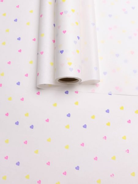 Бумага белая крафт 50г/м2, 70см x 10м Сердечки конфетти, счастье