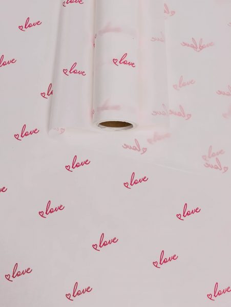 Бумага белая крафт 50г/м2, 70см x 10м Классика Love, розовый