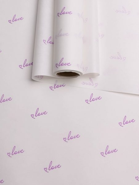 / Бумага белая крафт 50г/м2, 70см x 10м Классика Love, сиреневый