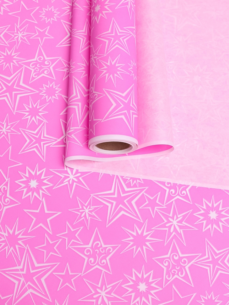 / Бумага белая крафт 50г/м2, 70см x 10м Звездный микс, розовый