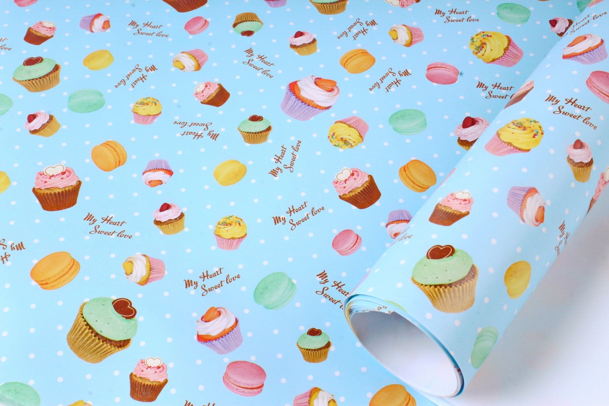 Бумага белая крафт 50г/м2, 70см x 10м Сердечки конфетти, счастье
