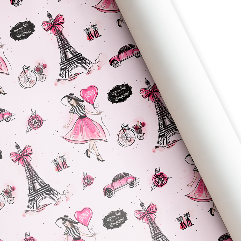 Бумага подарочная “Париж” лист 60 см*89 см / 10 шт. /