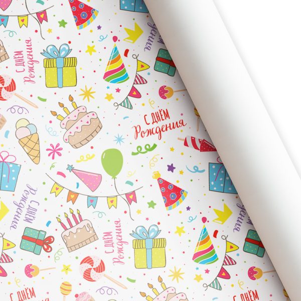 Бумага подарочная “С днем рождения” лист 60 см*87,5 см / 10 шт. / (РОССИЯ)
