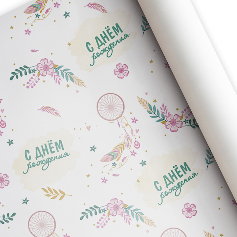 Бумага подарочная “С днем рождения!” Бохо, лист 60 см*89 см / 10 шт. / (РОССИЯ)