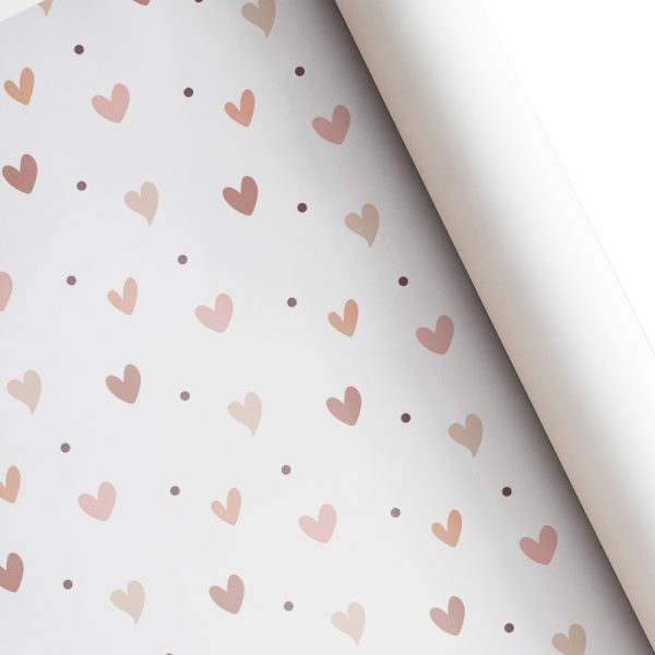 Бумага белая крафт 50г/м2, 70см x 10м Сердечки конфетти, нежность