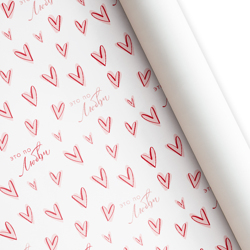 Бумага подарочная “Это по любви” лист 60 см*87,5 см / 10 шт. /