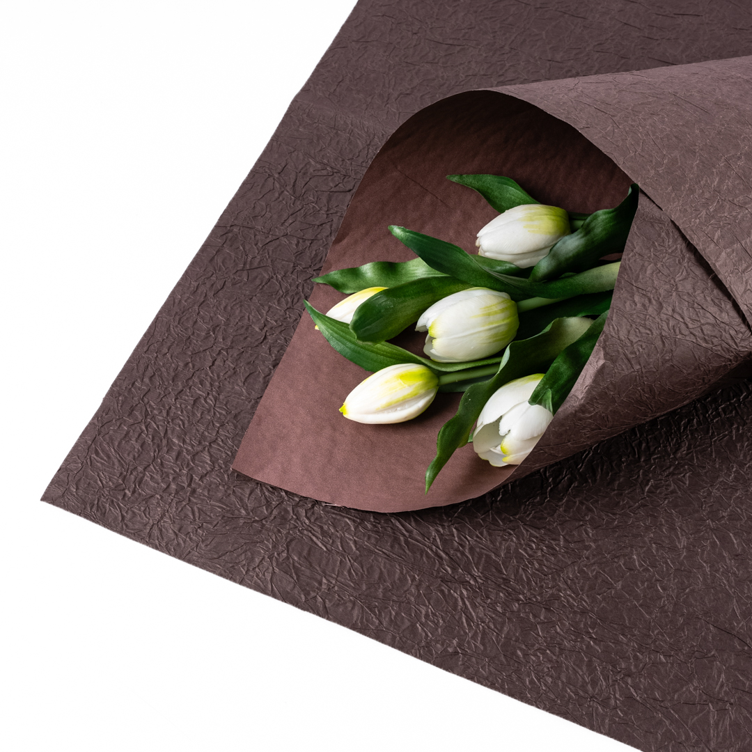 Флористическая крафт бумага жатая двухсторонняя, 70 см x 5 м, коричневый