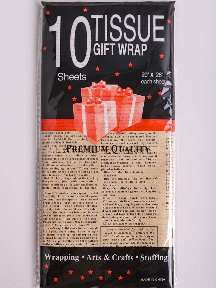 / Бумага тишью Газета 50х66см,10 лист черный на бежевом