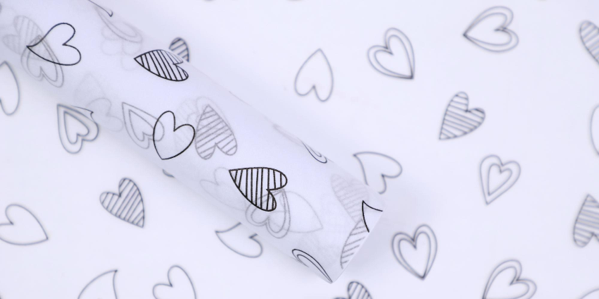 Бумага тишью Сердца 50х66см,10 лист черный на белом