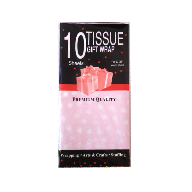 / Бумага тишью Розовая в белый горох 50*66 см, 10 шт. / листы /