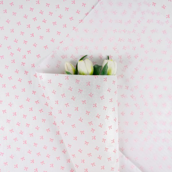 Бумага тишью с принтом “Бантики” 49*67см Розовые на белом-05 20 листов 35гр