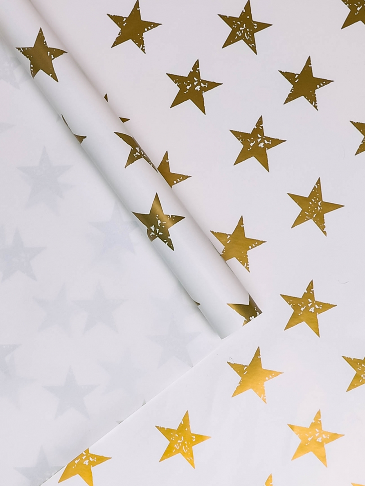 / Бумага упаковочная 70х100см 2лист 49 звезды золото