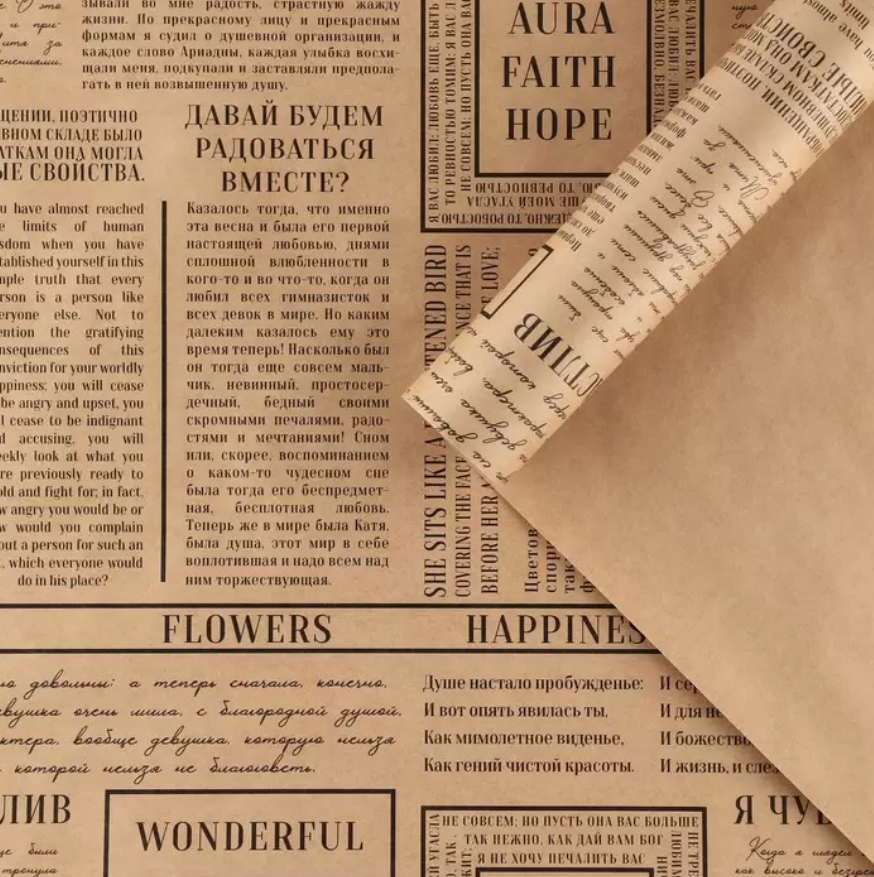 Бумага упаковочная крафтовая «Газета», 50 х 70 см