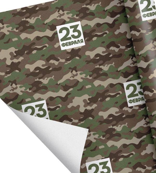 Бумага упаковочная крафтовая белая «23 февраля хаки», 50 x 70 см
