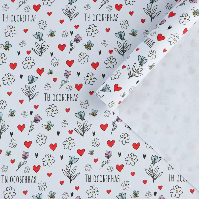 / Бумага упаковочная крафтовая белая «Ты особенная», 50 x 70 см